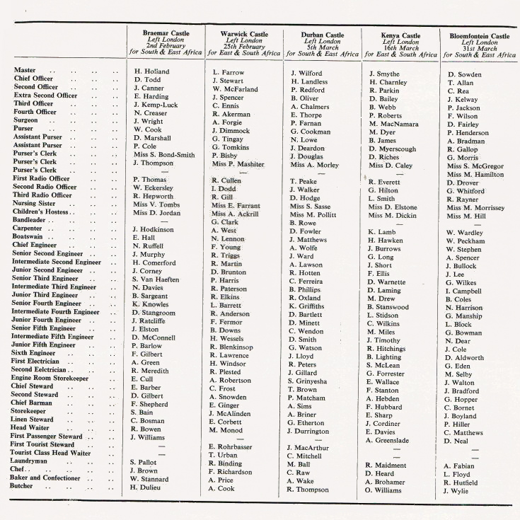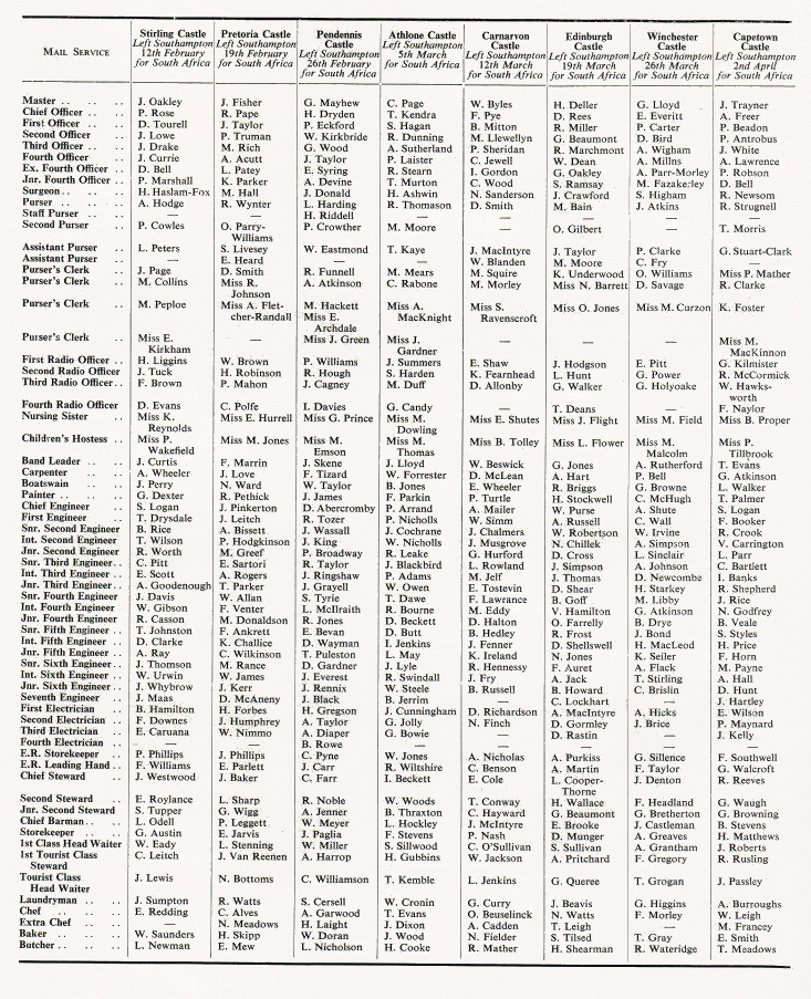 Crew lists - April