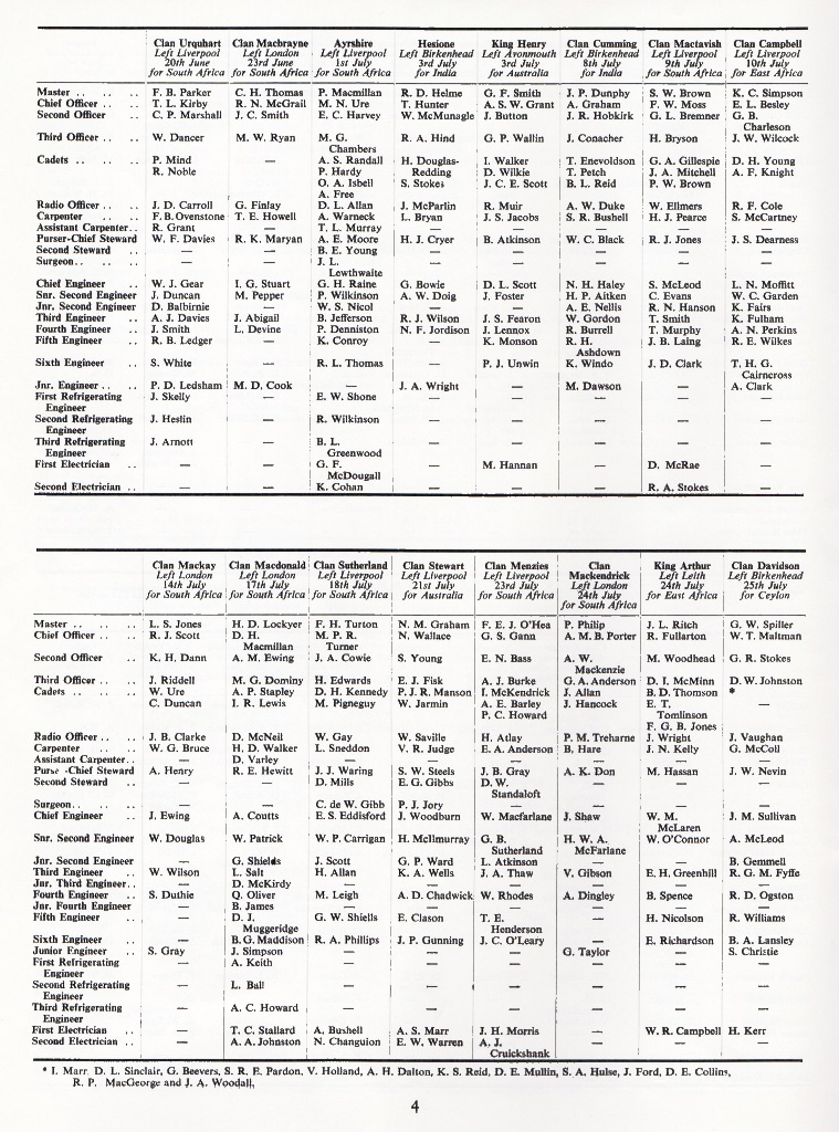 Crew lists - June/August 1959