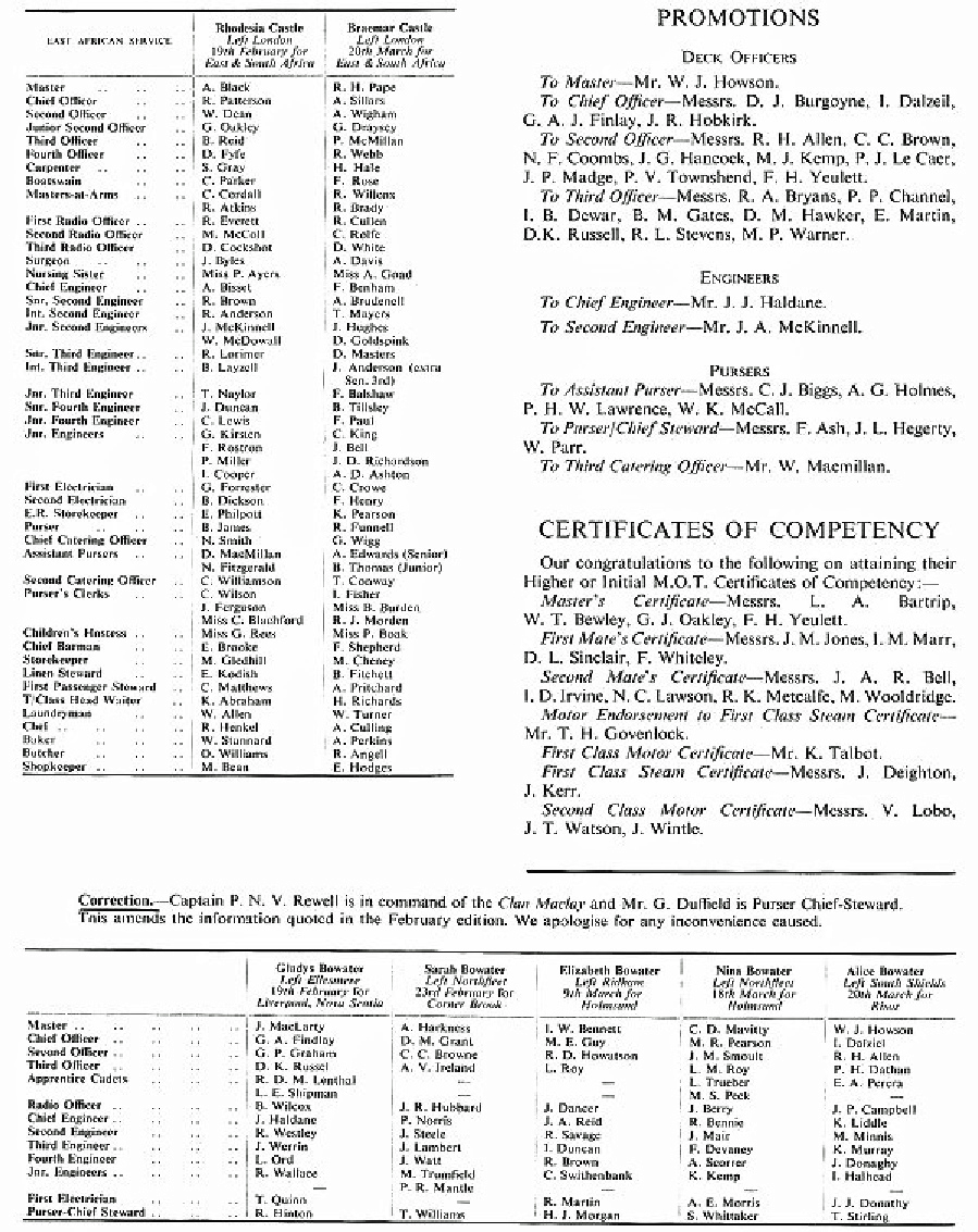 Crew lists -April 1965